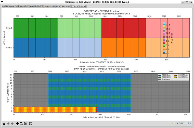 - Lower plot: Full channel view showing BWP and CORESET positions