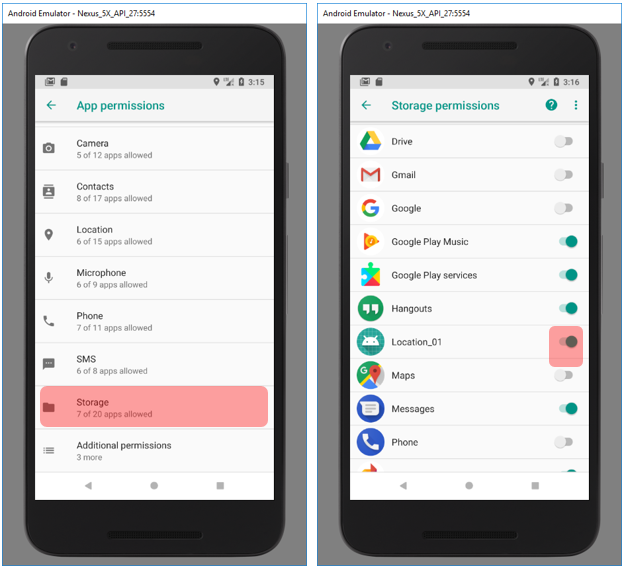 <uses-permission android:name="android.permission.ACCESS_COARSE_LOCATION"/> <uses-permission android:name="android.permission.ACCESS_FINE_LOCATION"/> <uses-permission android:name="android.permission.WRITE_EXTERNAL_STORAGE"/> <uses-permission android:name="android.permission.READ_EXTERNAL_STORAGE"/>