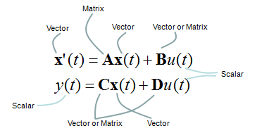 Regardless of how many inputs and outputs you have, there is a certain form of differential equation (linear differential equation) that can be converted into a set of Matrix equation as shown below. The special matrix form as shown below is called 'State Space Model'.