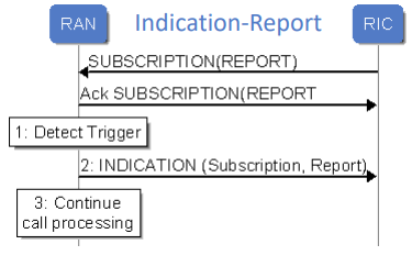 Subscription (Report): The RIC initiates the process by sending a subscription request to the RAN. This request specifies the types of reports or indications the RIC wants to receive from the RAN (e.g., performance metrics, events, alarms). The subscription acts as a filter, ensuring the RIC only receives relevant information.
