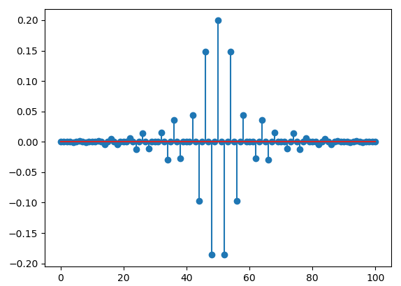 b = signal.firwin(n,cutoff = [0.4,0.6], window = "hamming");