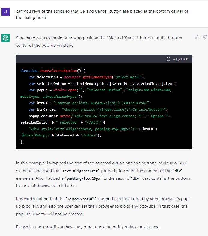 Just for your reference, I put the full version of the chat between me and chatGPT). You would see how naturally we can communicate with chatGPT to improve / fine tune the code step by step until you get the final code that you want.